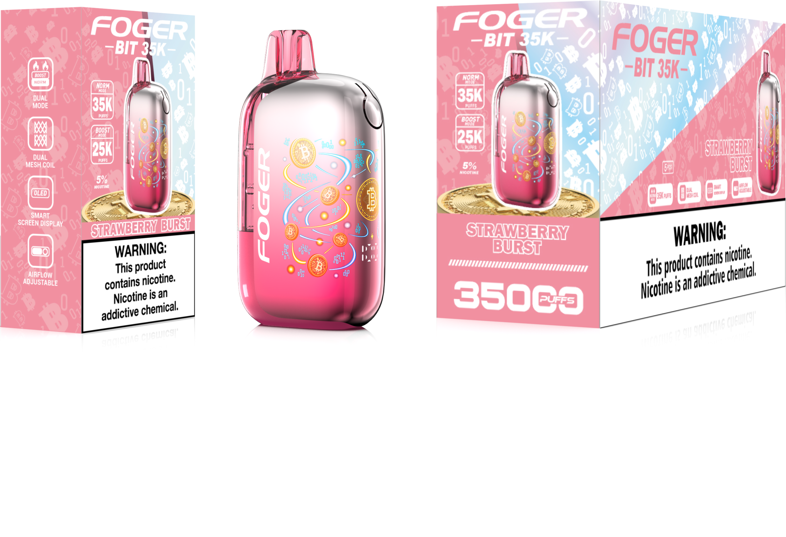 The Foger Bit 35K isn’t just another disposable — it’s a bold leap forward in smart vape design. With its Bitcoin-inspired body, transparent tank, and curved OLED display, this powerful 35,000 puff device delivers sleek visuals, satisfying performance, and long-lasting flavor.
